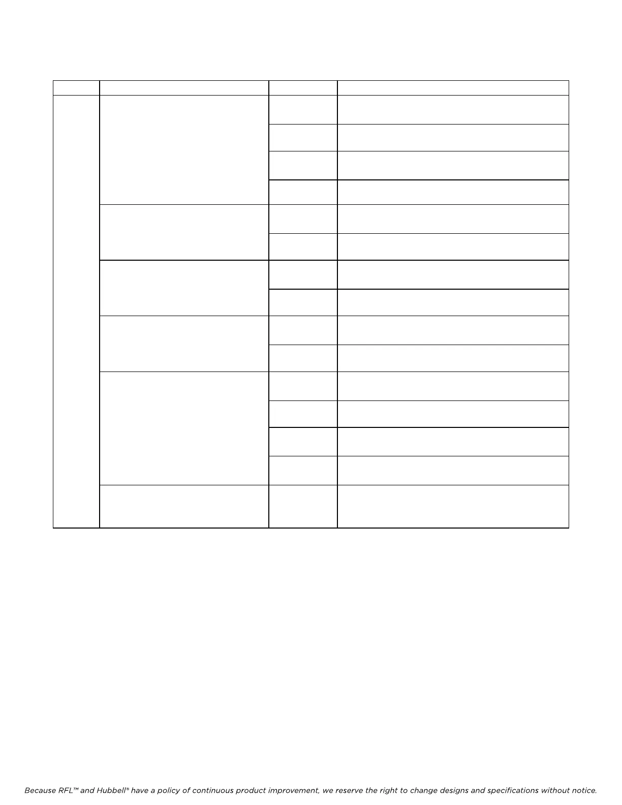 Because RFL™ and Hubbell® have a policy of continuous product improvement, we reserve the right to change designs and specifications without notice.