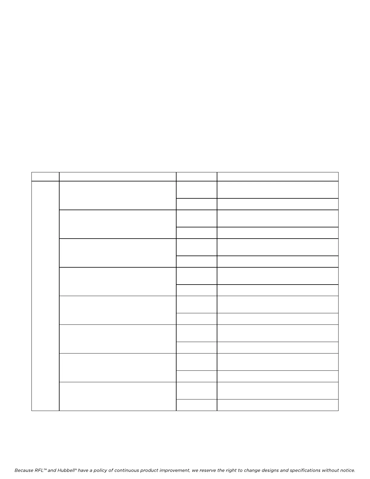 Because RFL™ and Hubbell® have a policy of continuous product improvement, we reserve the right to change designs and specifications without notice.