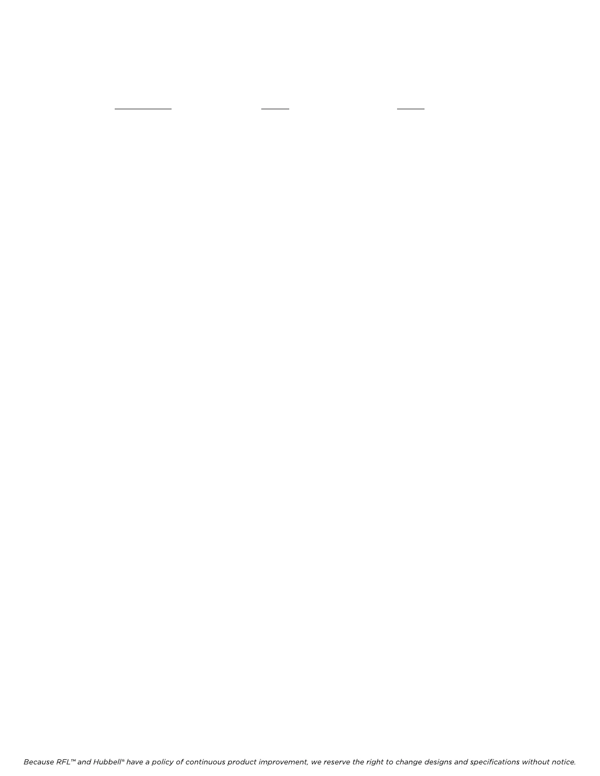 Because RFL™ and Hubbell® have a policy of continuous product improvement, we reserve the right to change designs and specifications without notice.