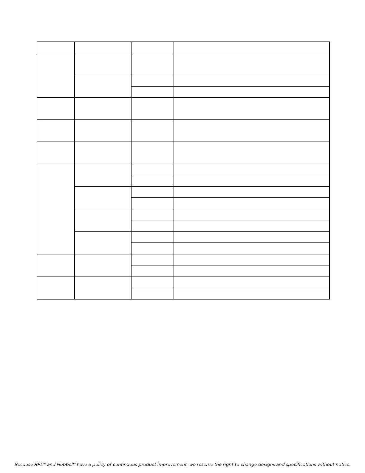 Because RFL™ and Hubbell® have a policy of continuous product improvement, we reserve the right to change designs and specifications without notice.