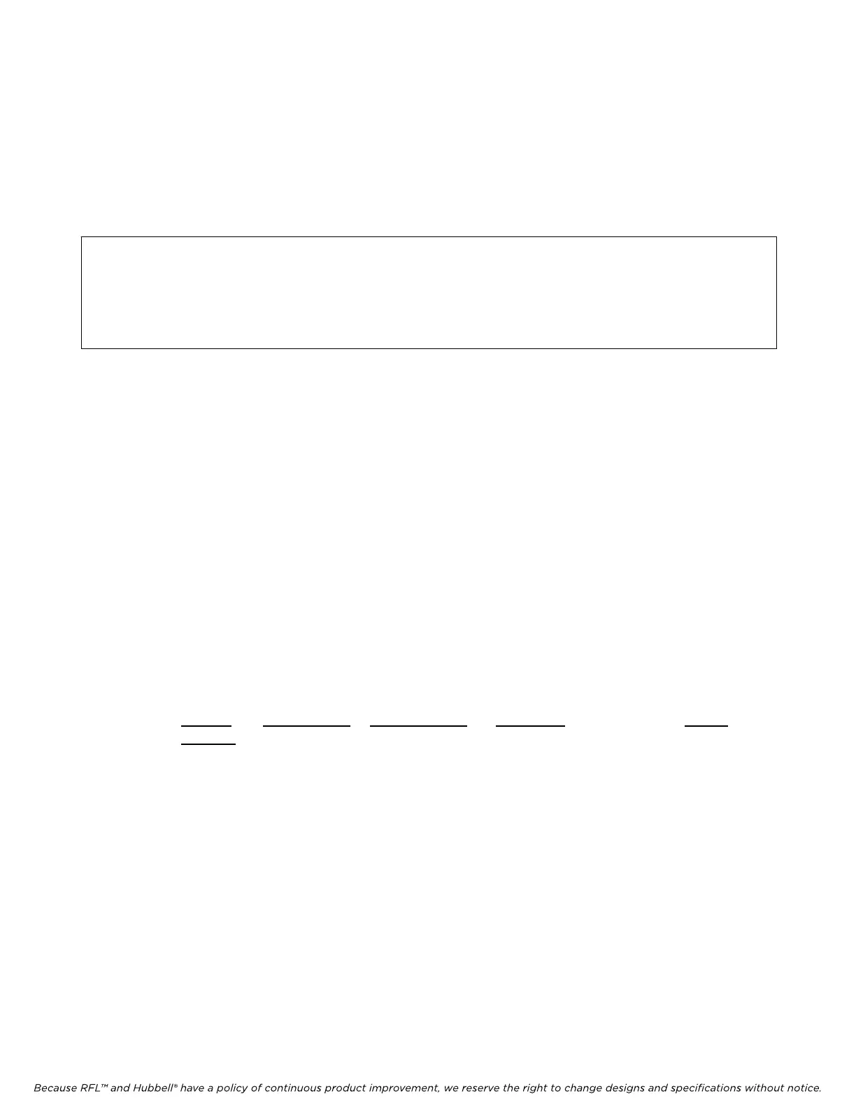 Because RFL™ and Hubbell® have a policy of continuous product improvement, we reserve the right to change designs and specifications without notice.
