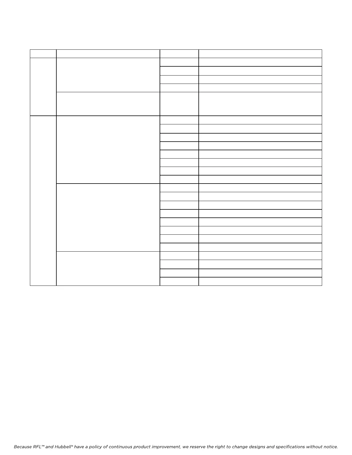 Because RFL™ and Hubbell® have a policy of continuous product improvement, we reserve the right to change designs and specifications without notice.