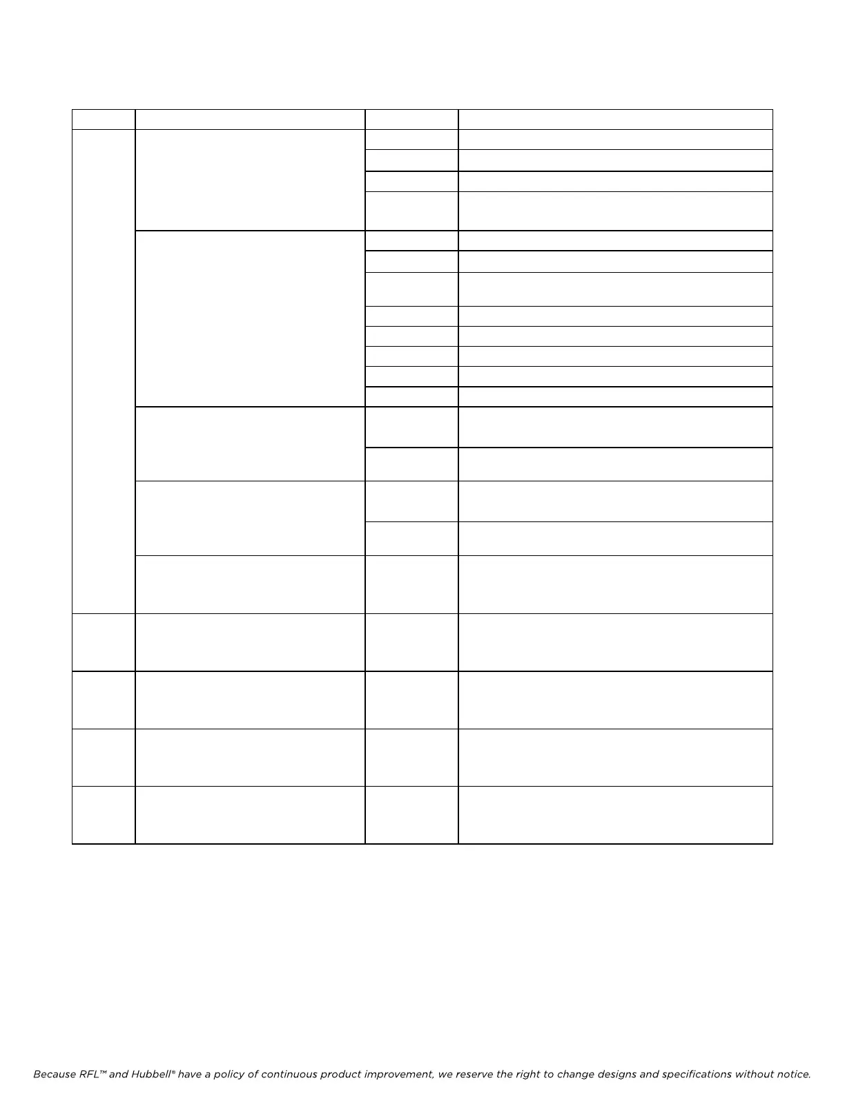 Because RFL™ and Hubbell® have a policy of continuous product improvement, we reserve the right to change designs and specifications without notice.