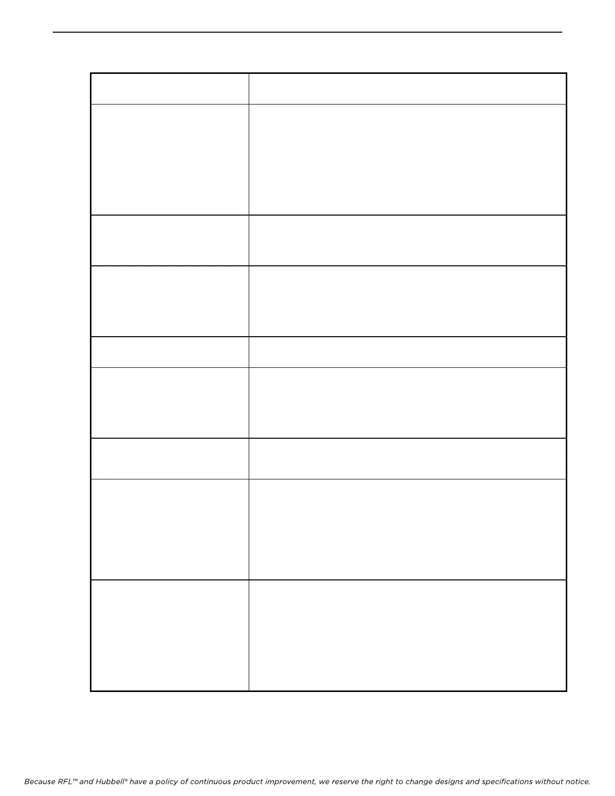 Because RFL™ and Hubbell® have a policy of continuous product improvement, we reserve the right to change designs and specifications without notice.