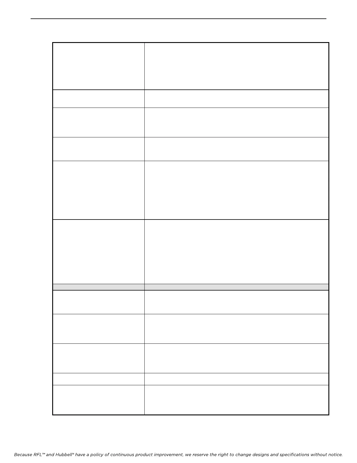 Because RFL™ and Hubbell® have a policy of continuous product improvement, we reserve the right to change designs and specifications without notice.