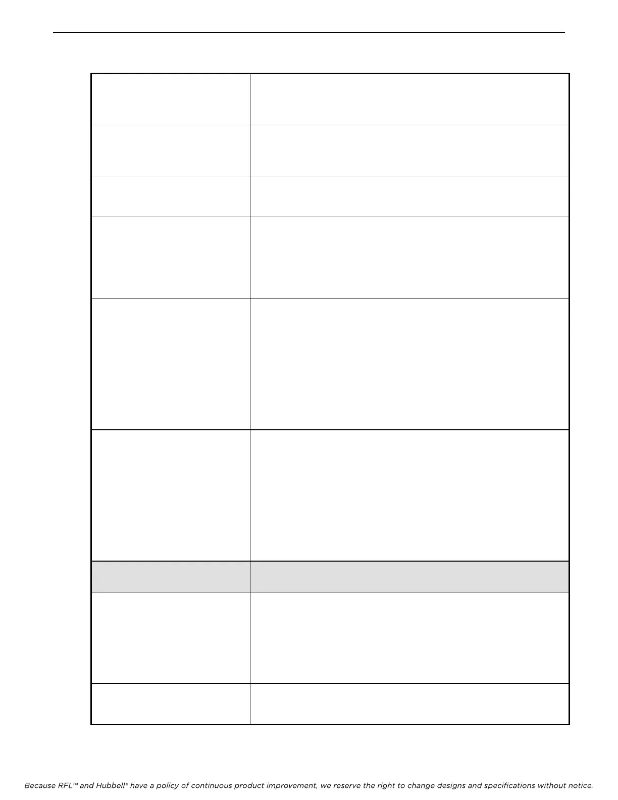 Because RFL™ and Hubbell® have a policy of continuous product improvement, we reserve the right to change designs and specifications without notice.
