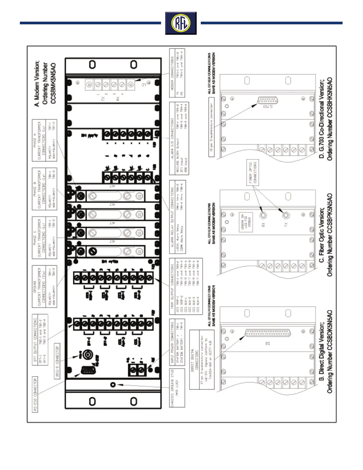 Figure 15. Rear views, typical RFL 9300 terminals