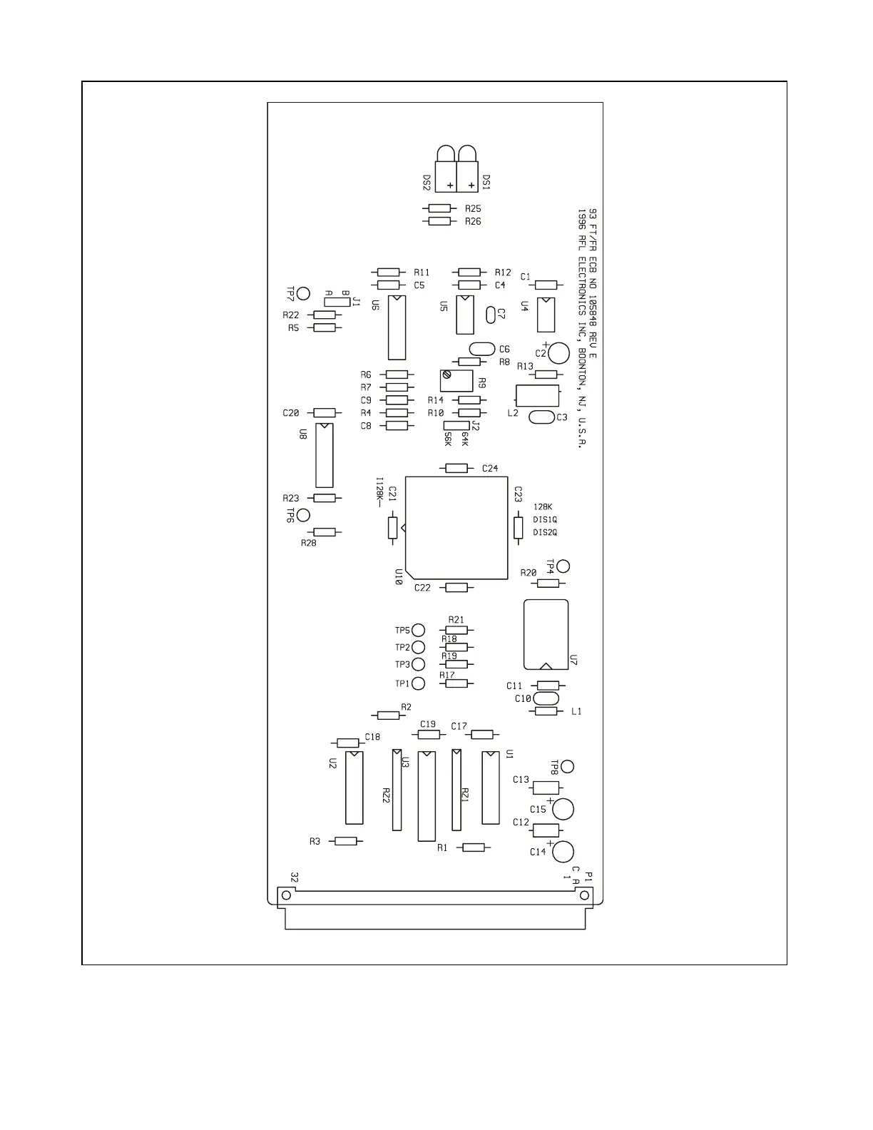 RFL Electronics RFL 9300 - Figure 17-5. Component Locator Drawing, RFL 93 B FT;FR Single Width Fiber Optic Transceiver Module