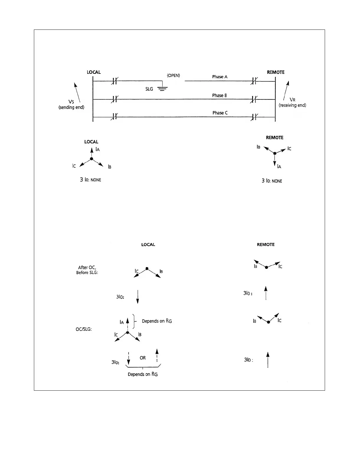 Figure 3-24. Phasor analysis of ground strong-feed operation, based on a load current of 0.5 amperes or more, with