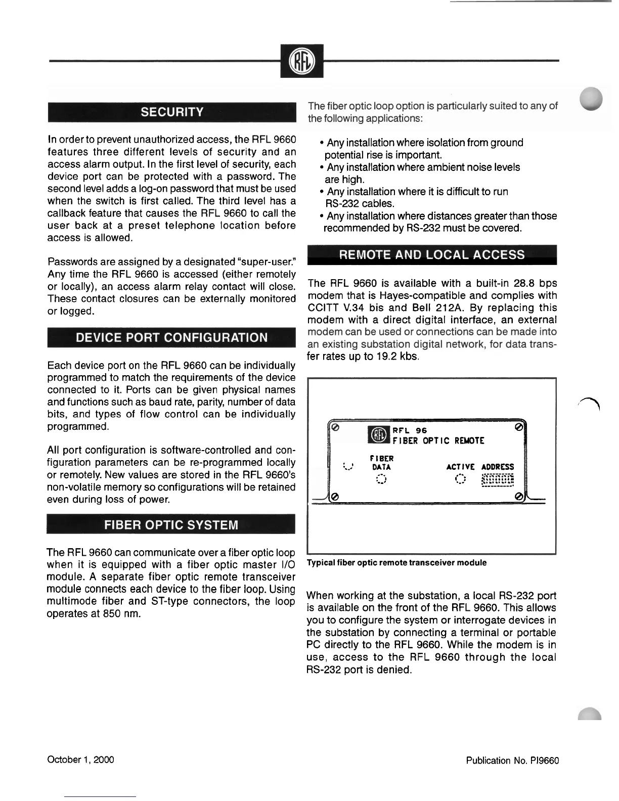 will close. The RFL 9660 is available with a built-in 28.8 bps