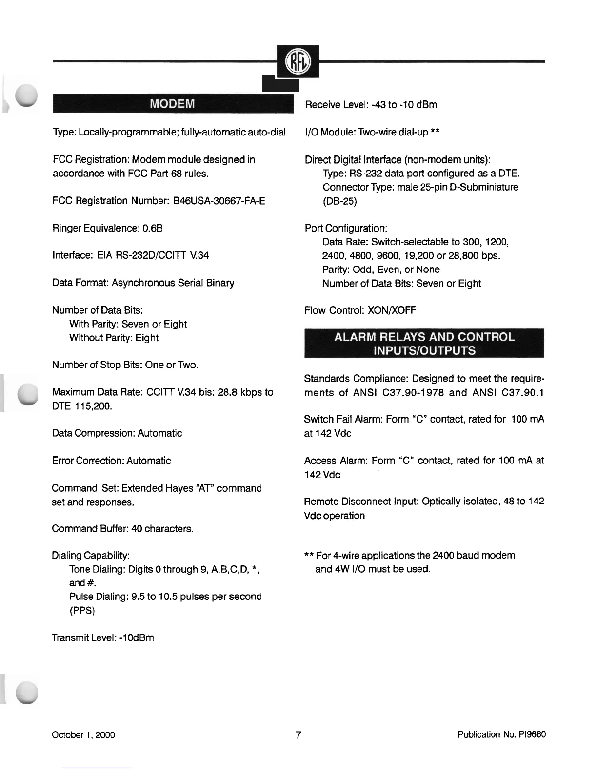 Switch Fail Alarm: Form "Cn contact, rated for 100 mA