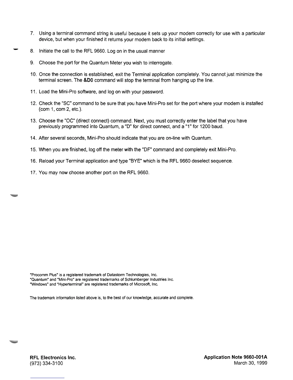 "Quantum" and "Mini-Pro" are registered trademarks of Schlumberger Industries Inc.