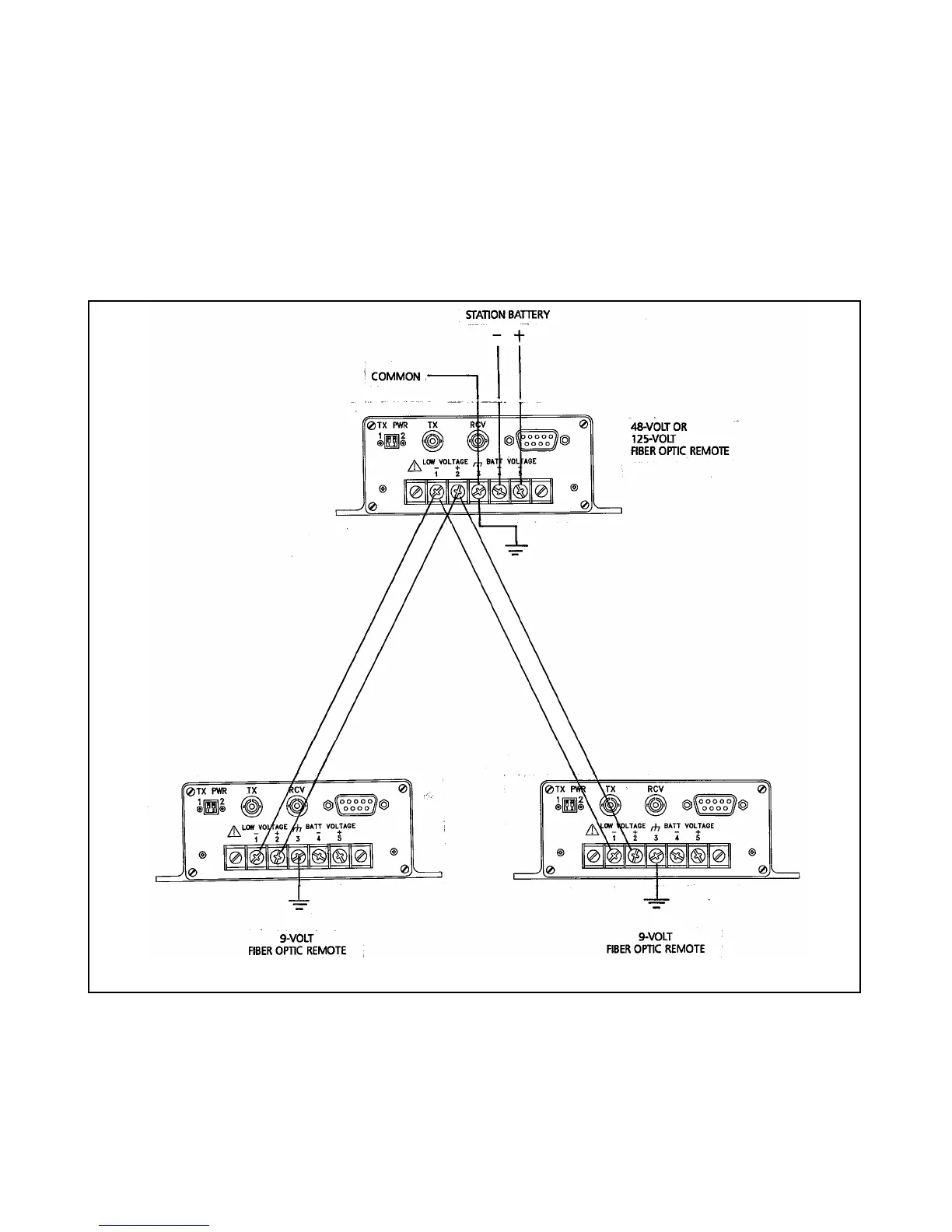 Figure 2-10. Power connections between three fiber optic remotes at the same site