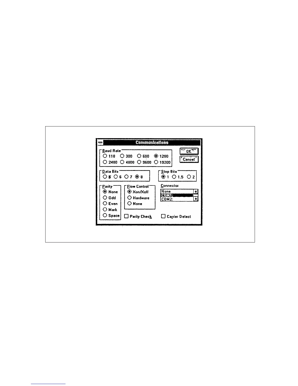 Figure 4-4. "Communications" dialog box for Microsoft Windows Terminal Emulator