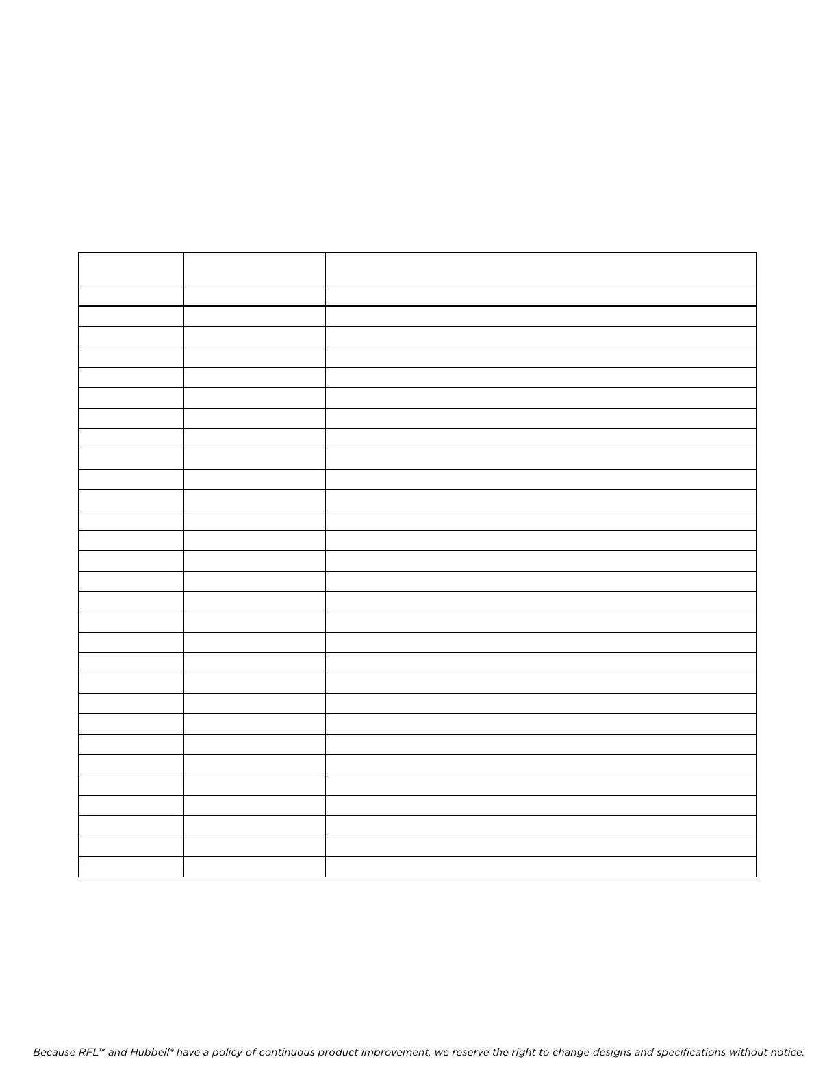 Because RFL™ and Hubbell® have a policy of continuous product improvement, we reserve the right to change designs and specifications without notice.