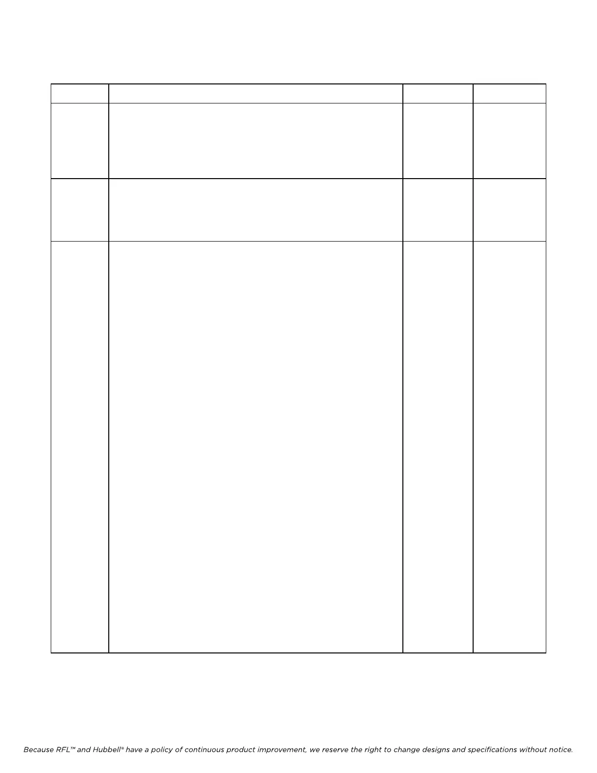 Because RFL™ and Hubbell® have a policy of continuous product improvement, we reserve the right to change designs and specifications without notice.