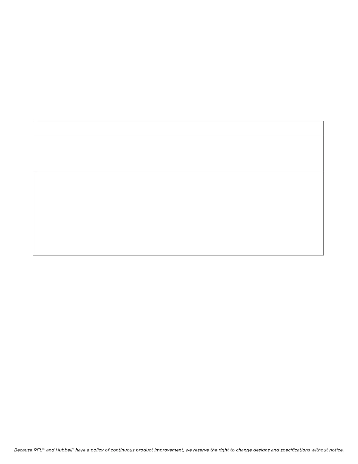 Because RFL™ and Hubbell® have a policy of continuous product improvement, we reserve the right to change designs and specifications without notice.