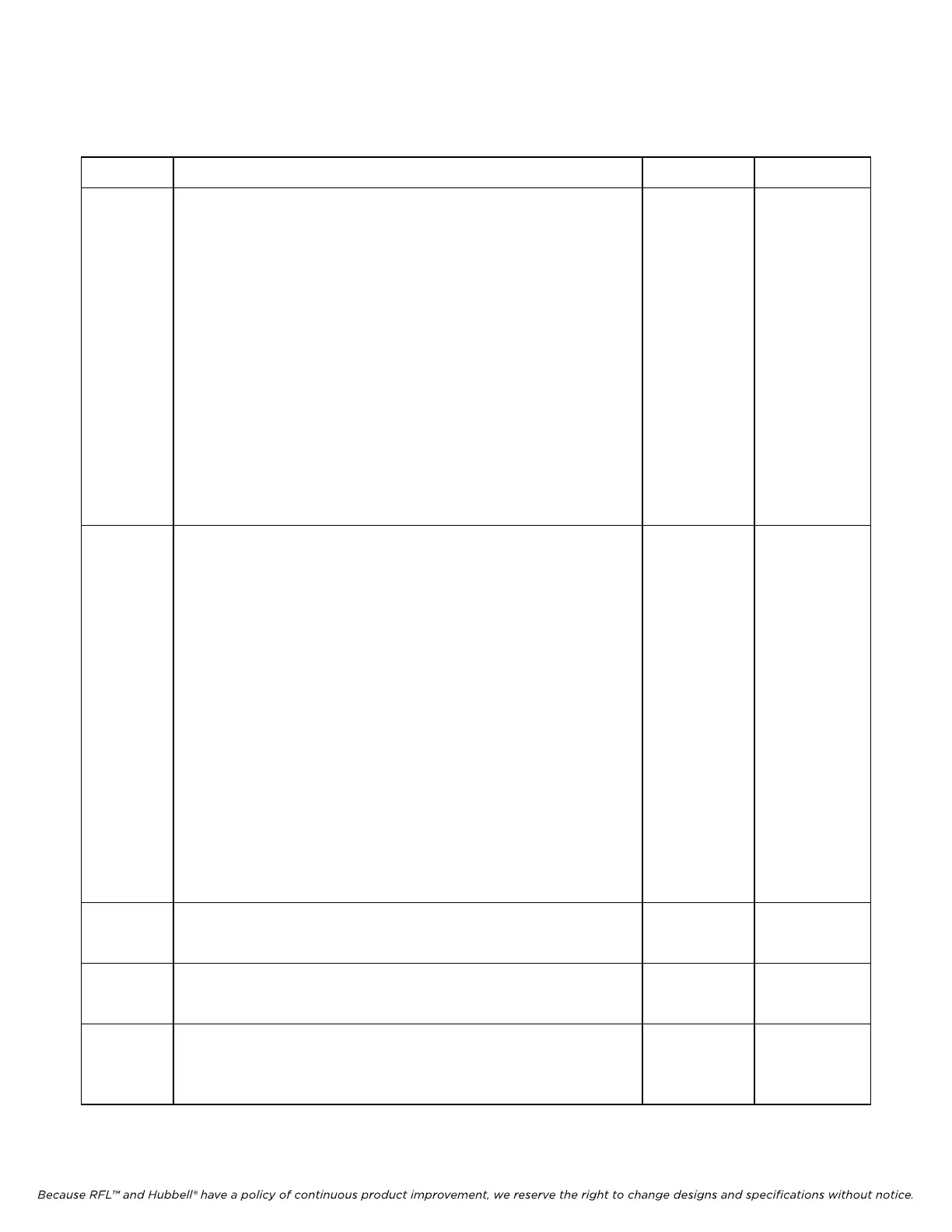 Because RFL™ and Hubbell® have a policy of continuous product improvement, we reserve the right to change designs and specifications without notice.