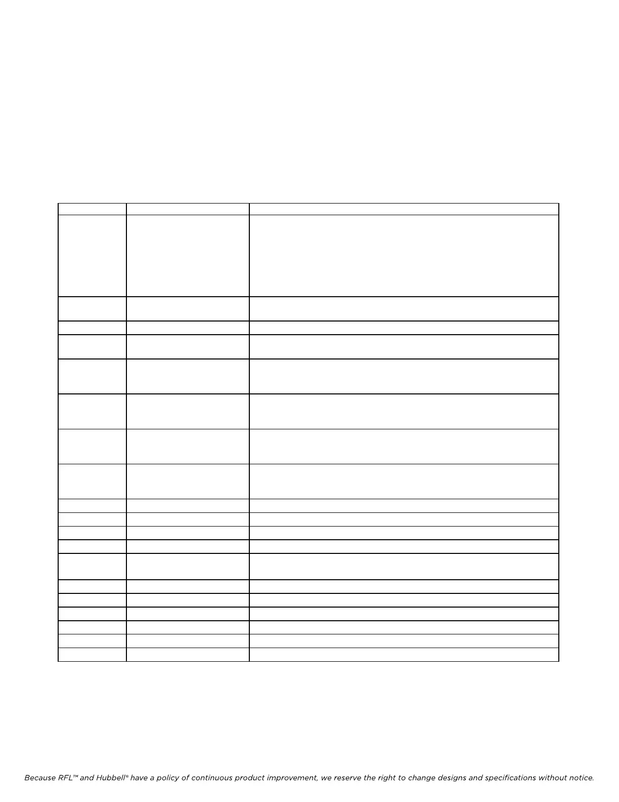 Because RFL™ and Hubbell® have a policy of continuous product improvement, we reserve the right to change designs and specifications without notice.