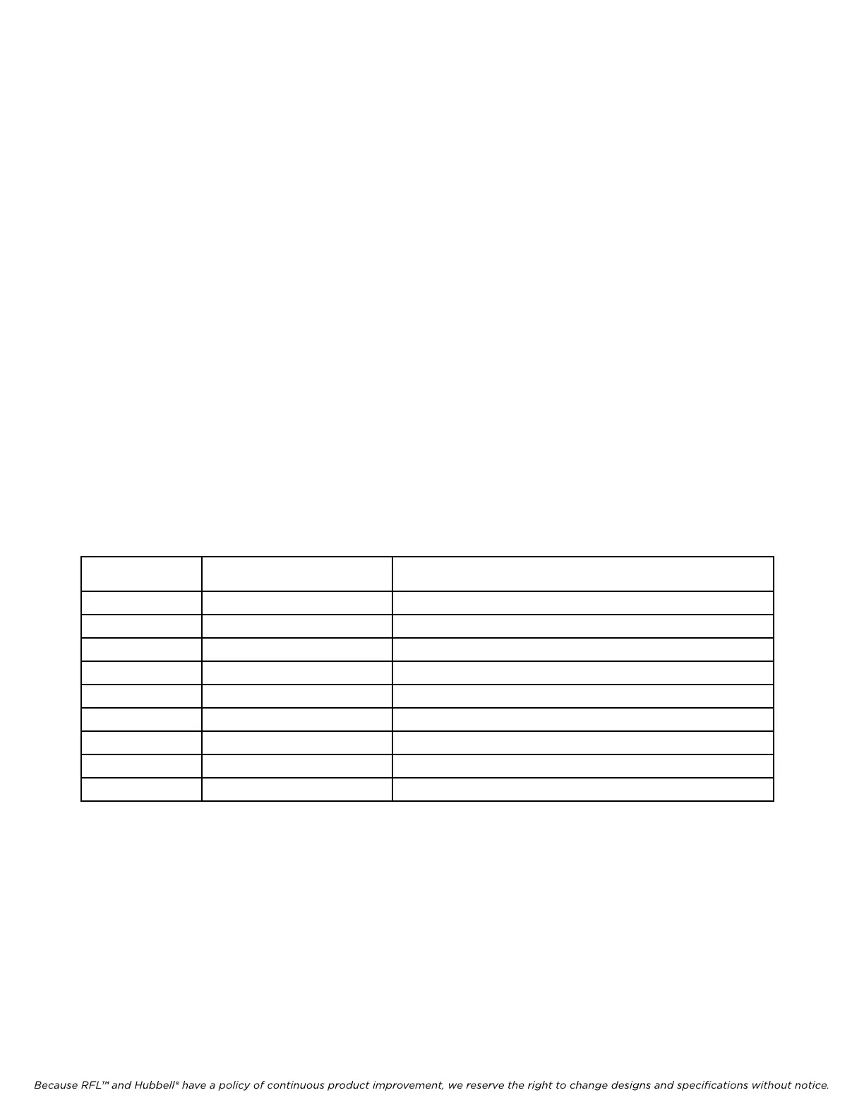 Because RFL™ and Hubbell® have a policy of continuous product improvement, we reserve the right to change designs and specifications without notice.