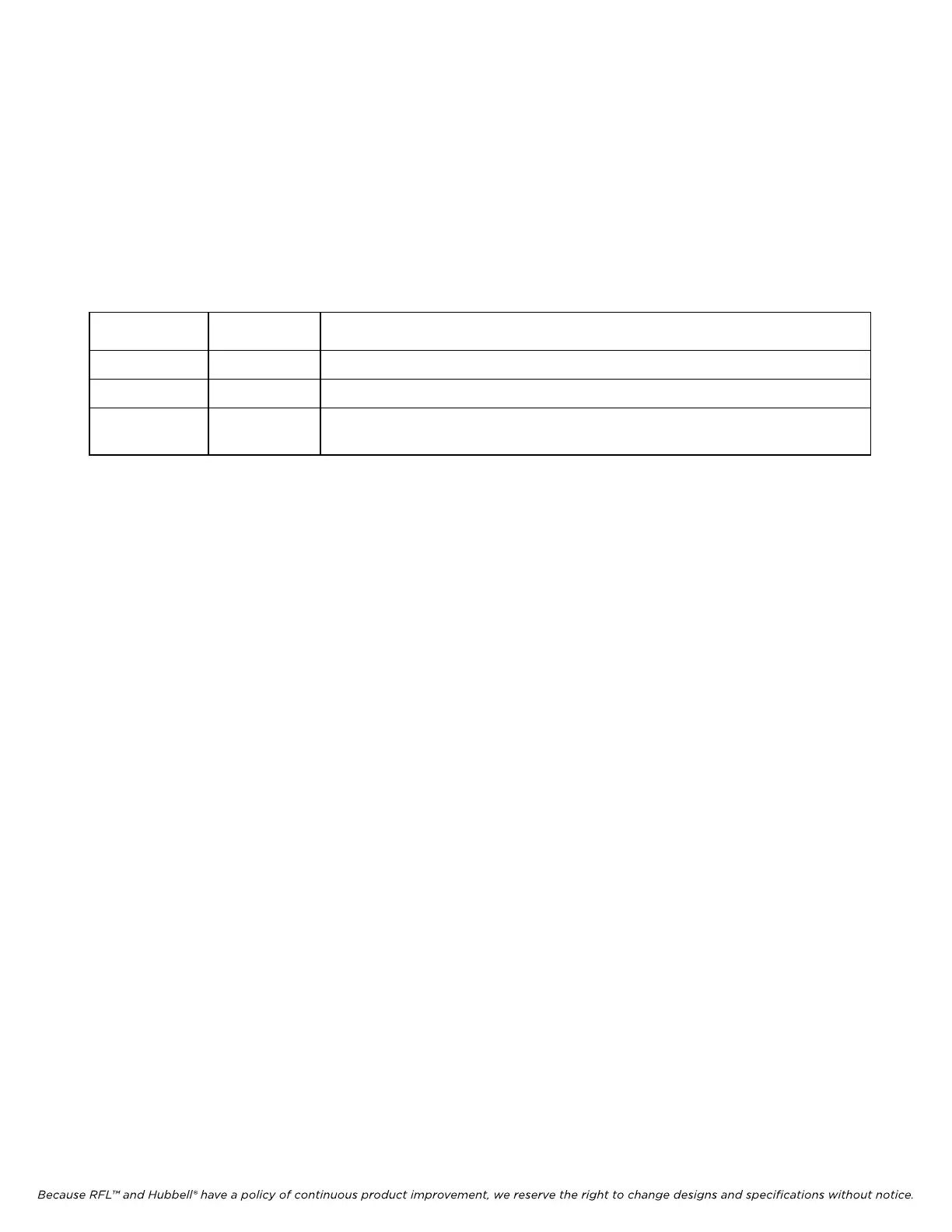 Because RFL™ and Hubbell® have a policy of continuous product improvement, we reserve the right to change designs and specifications without notice.