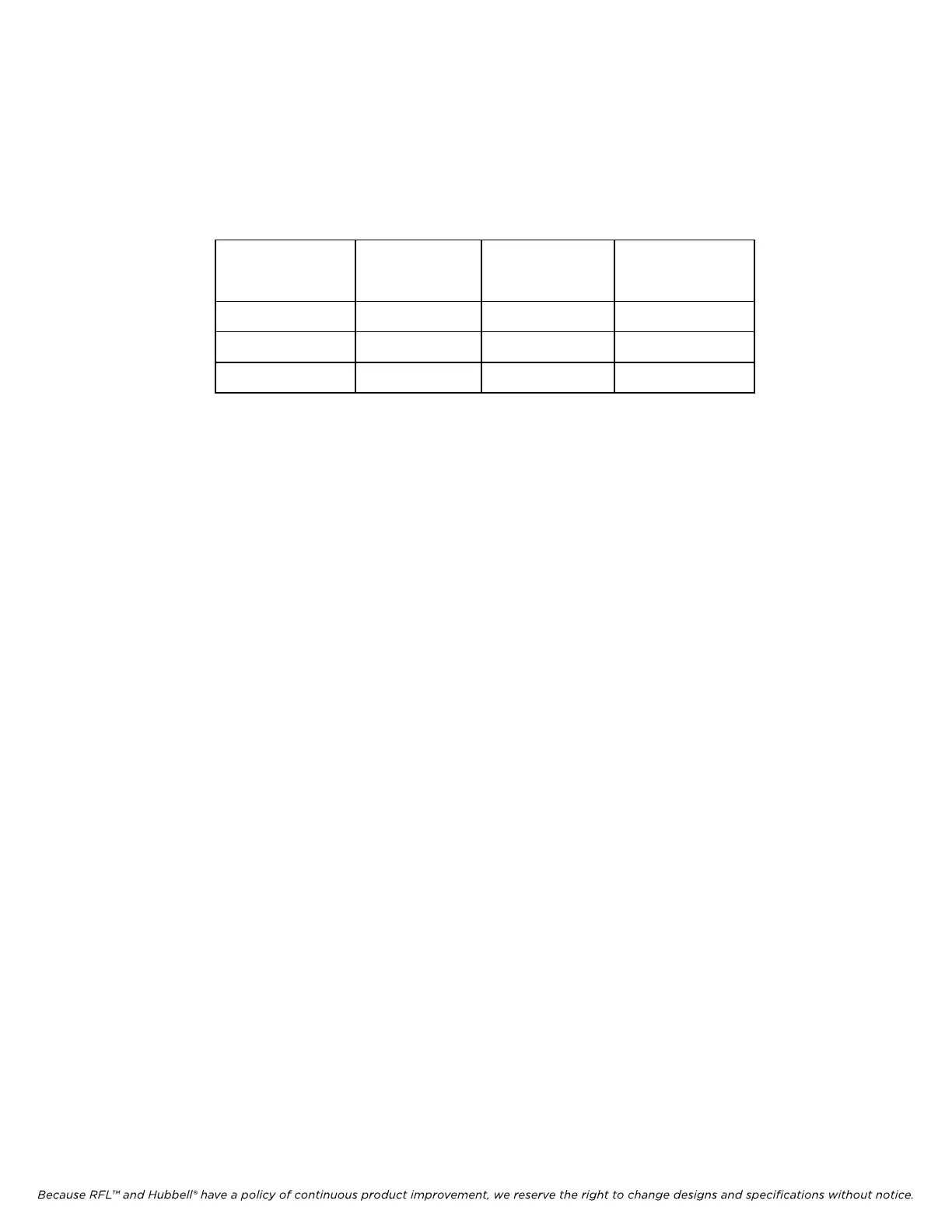 Because RFL™ and Hubbell® have a policy of continuous product improvement, we reserve the right to change designs and specifications without notice.