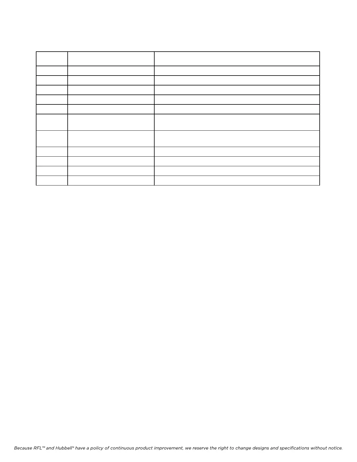 Because RFL™ and Hubbell® have a policy of continuous product improvement, we reserve the right to change designs and specifications without notice.