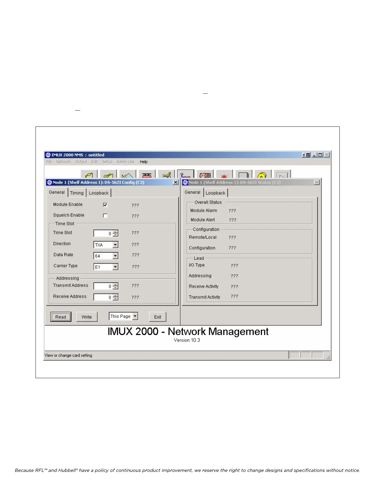 The Configuration and Status window for the DS562I is shown in Figure 6-22. . The user can change
