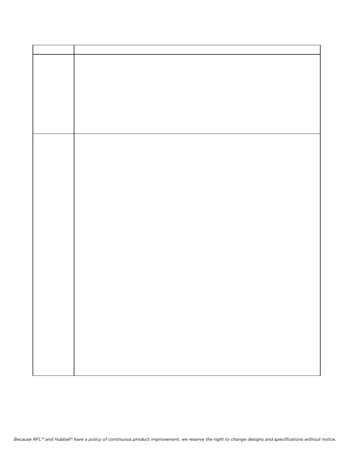 Because RFL™ and Hubbell® have a policy of continuous product improvement, we reserve the right to change designs and specifications without notice.