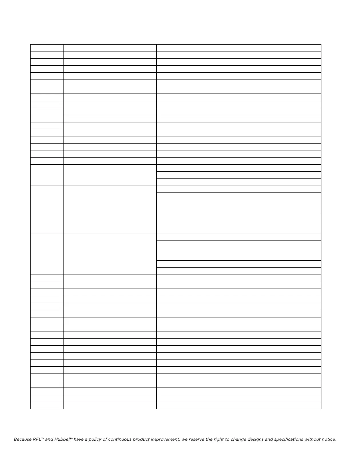 Because RFL™ and Hubbell® have a policy of continuous product improvement, we reserve the right to change designs and specifications without notice.