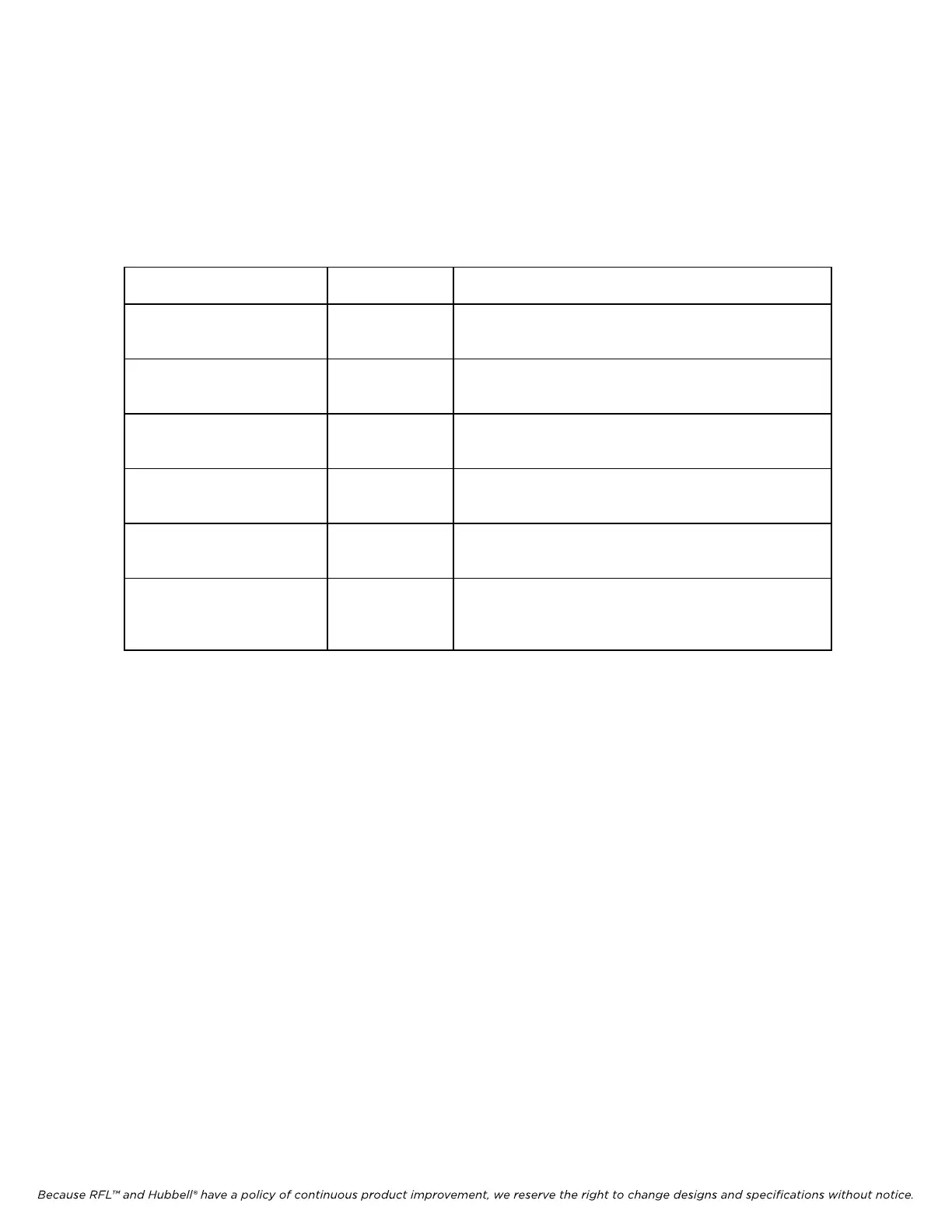 Because RFL™ and Hubbell® have a policy of continuous product improvement, we reserve the right to change designs and specifications without notice.