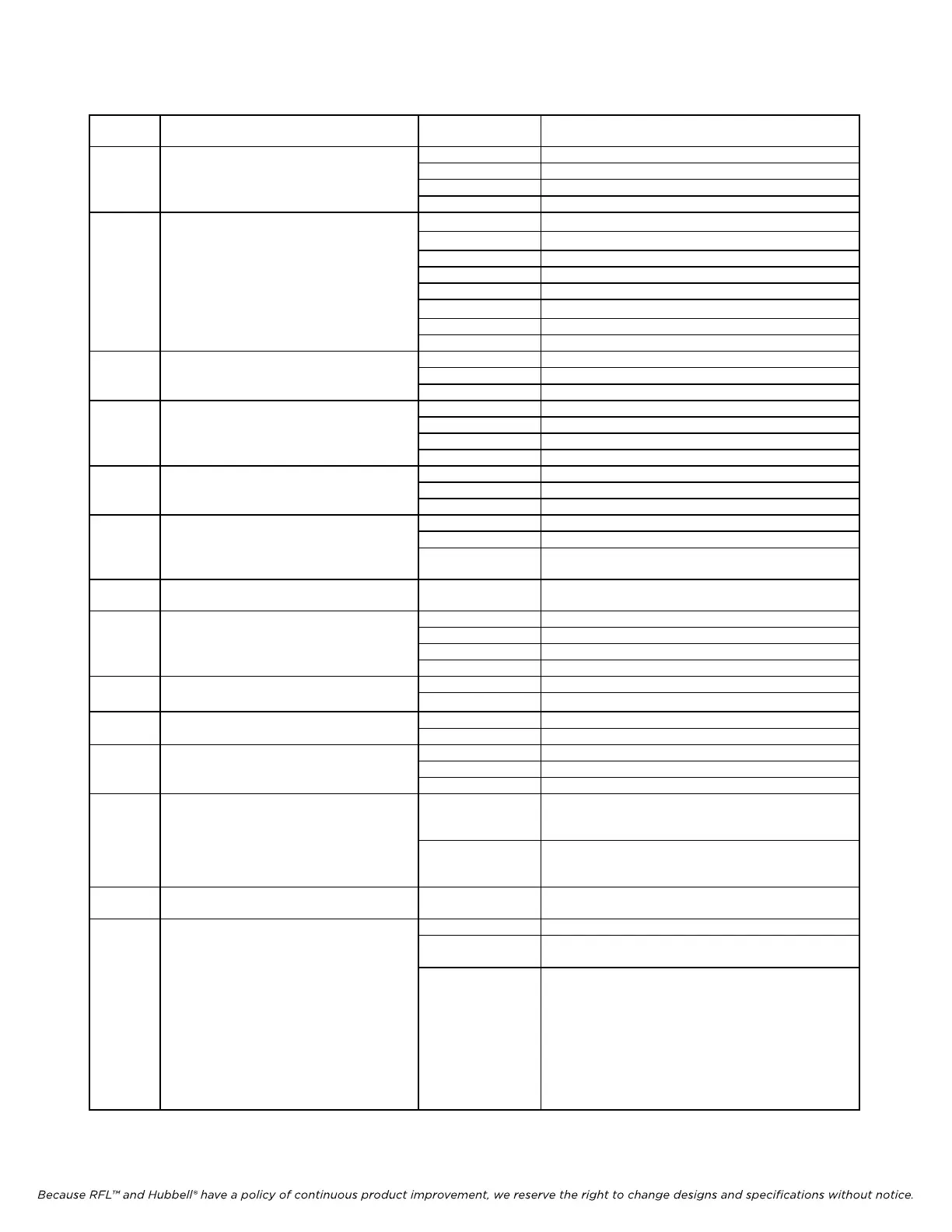 Because RFL™ and Hubbell® have a policy of continuous product improvement, we reserve the right to change designs and specifications without notice.