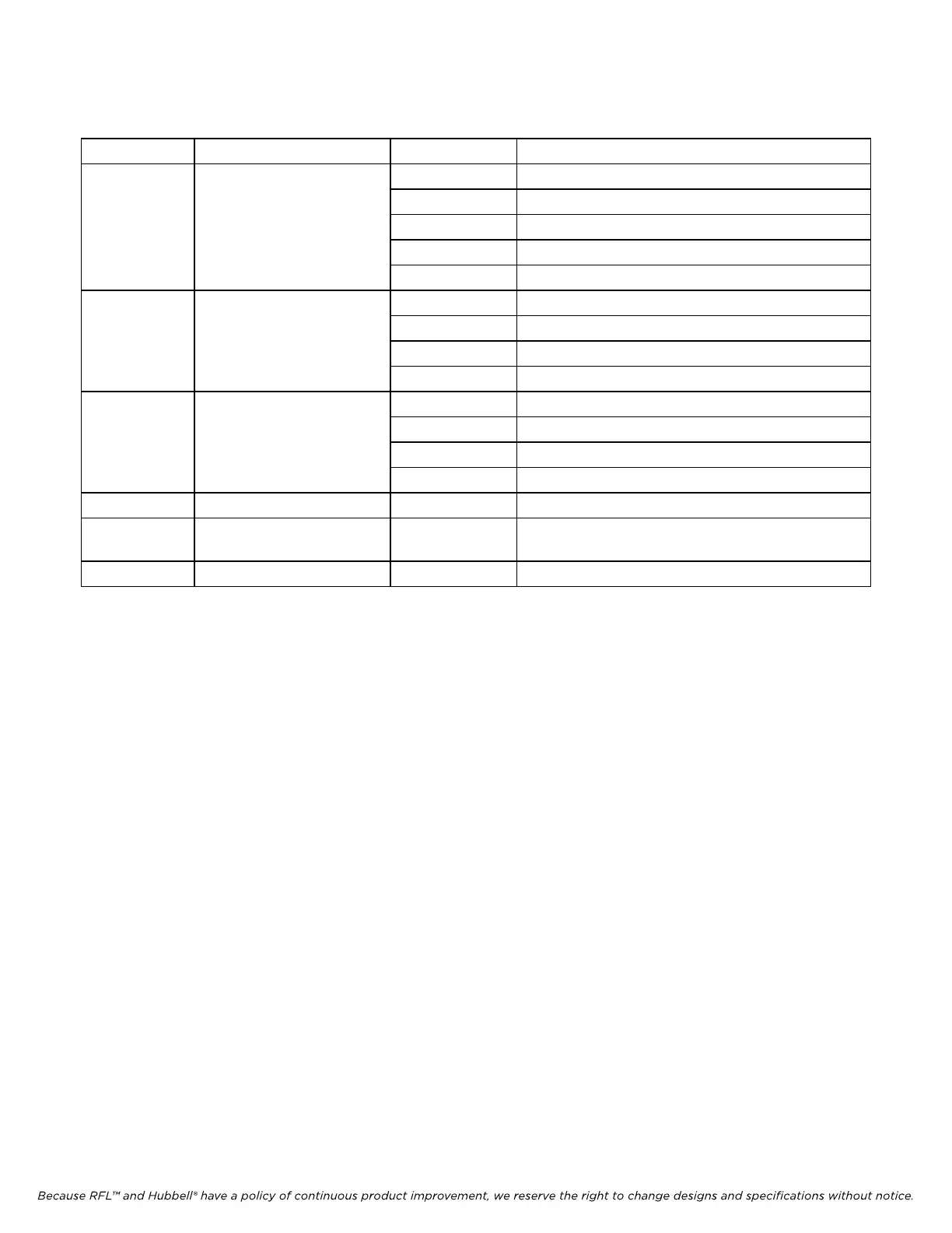 Because RFL™ and Hubbell® have a policy of continuous product improvement, we reserve the right to change designs and specifications without notice.