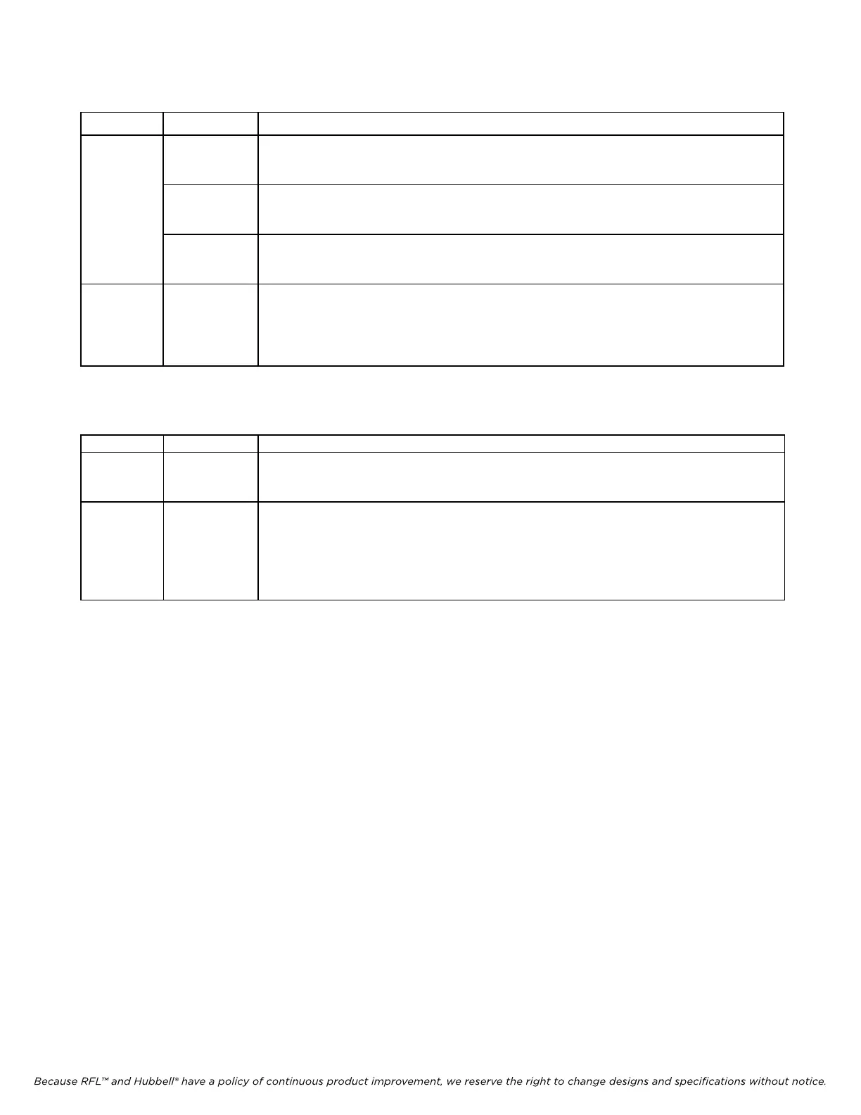 Because RFL™ and Hubbell® have a policy of continuous product improvement, we reserve the right to change designs and specifications without notice.