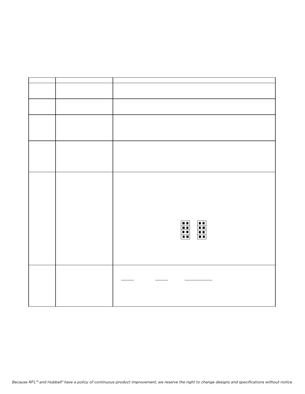 Because RFL™ and Hubbell® have a policy of continuous product improvement, we reserve the right to change designs and specifications without notice.