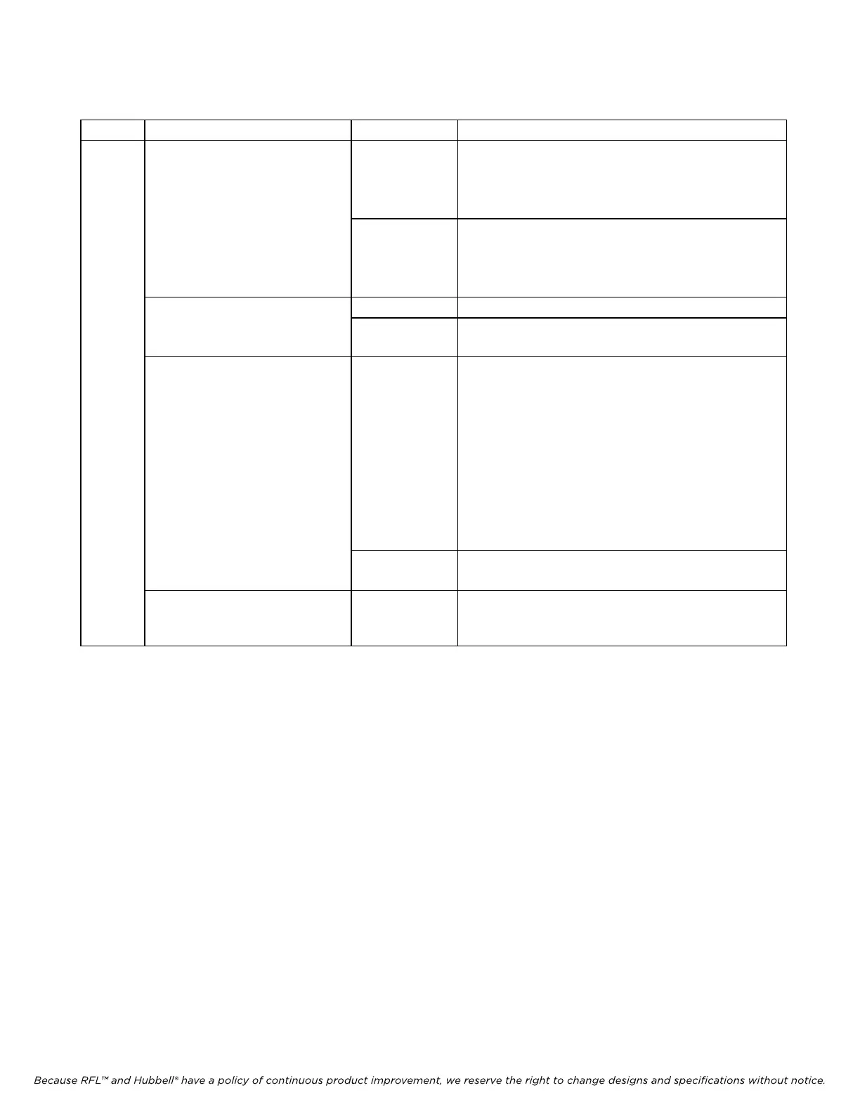 Because RFL™ and Hubbell® have a policy of continuous product improvement, we reserve the right to change designs and specifications without notice.