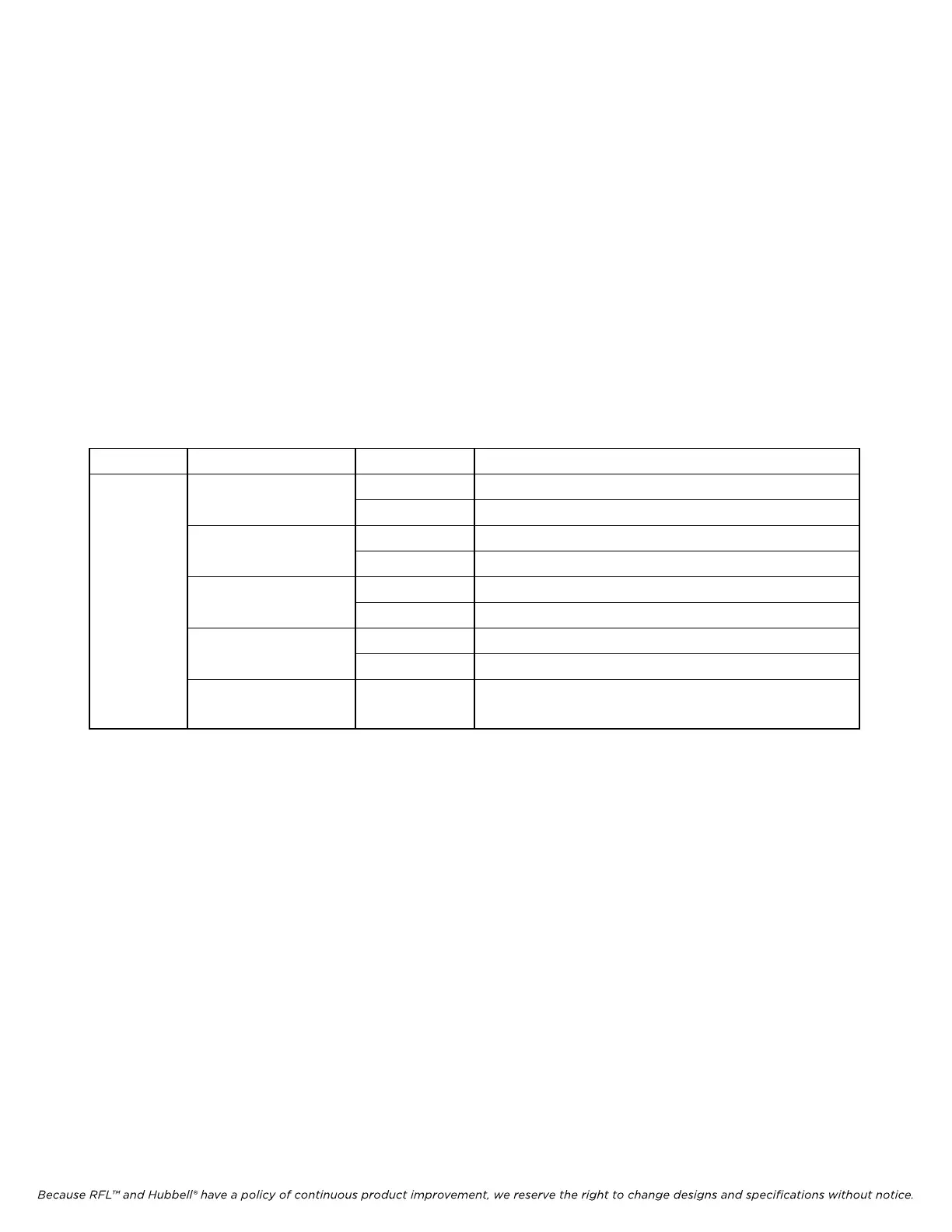 Because RFL™ and Hubbell® have a policy of continuous product improvement, we reserve the right to change designs and specifications without notice.