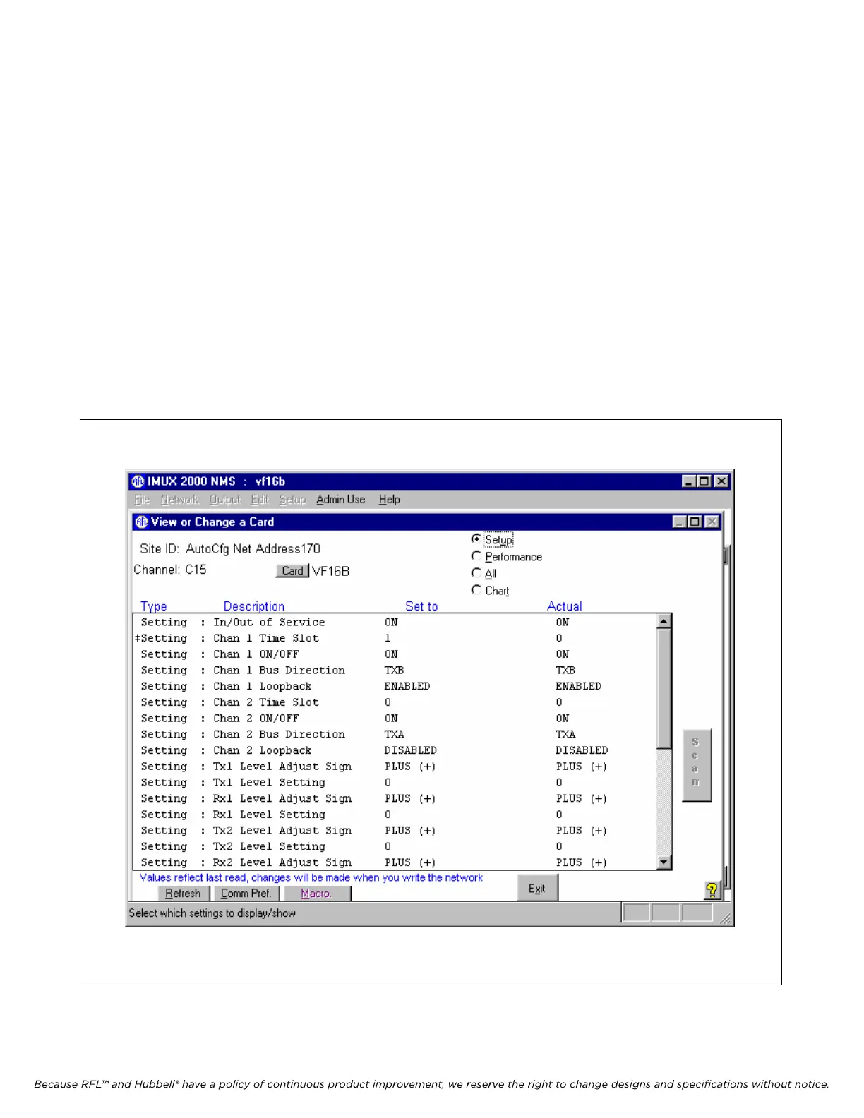 in NMS, select the “View or Change a Card” screen for the VF-16B module. An NMS window will be