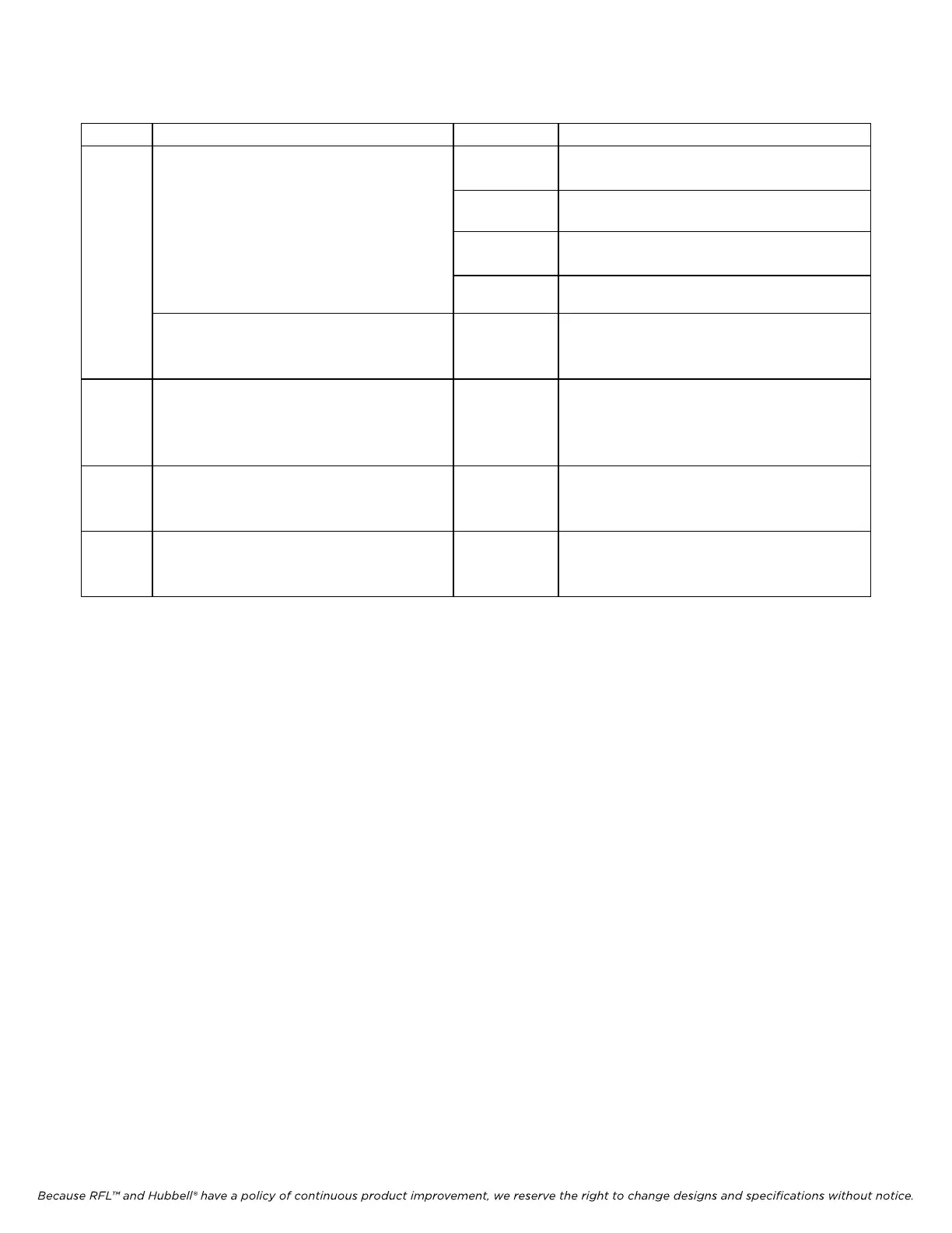 Because RFL™ and Hubbell® have a policy of continuous product improvement, we reserve the right to change designs and specifications without notice.