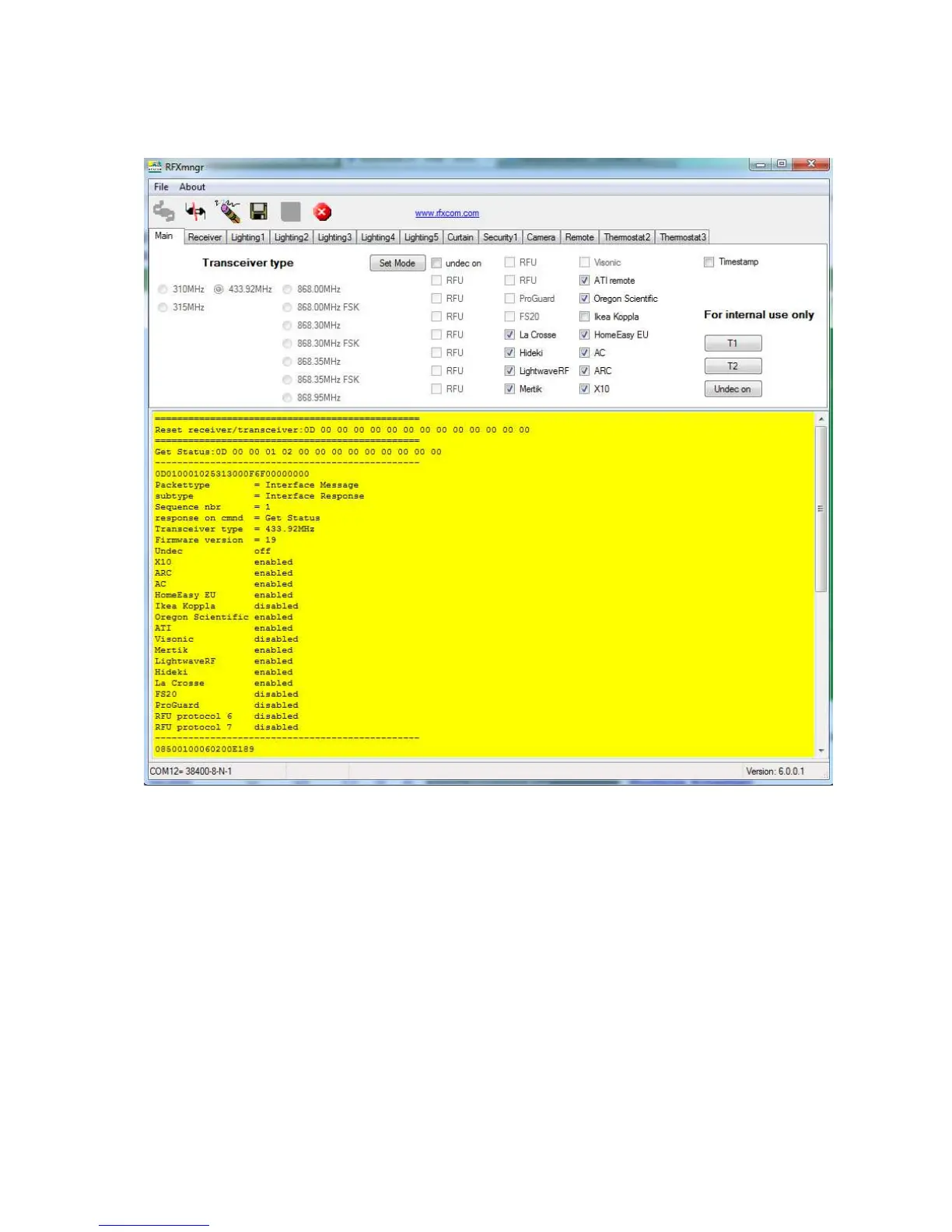 The RFXmngr program supports decoding of received data and allows you to transmit