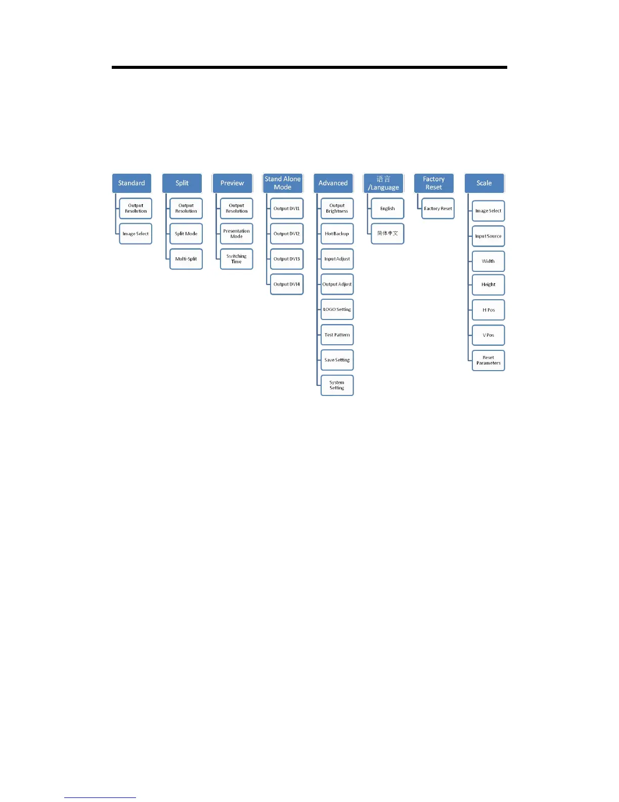 RGBlink VENUS X1 PRO-E - Menu Structure Overview