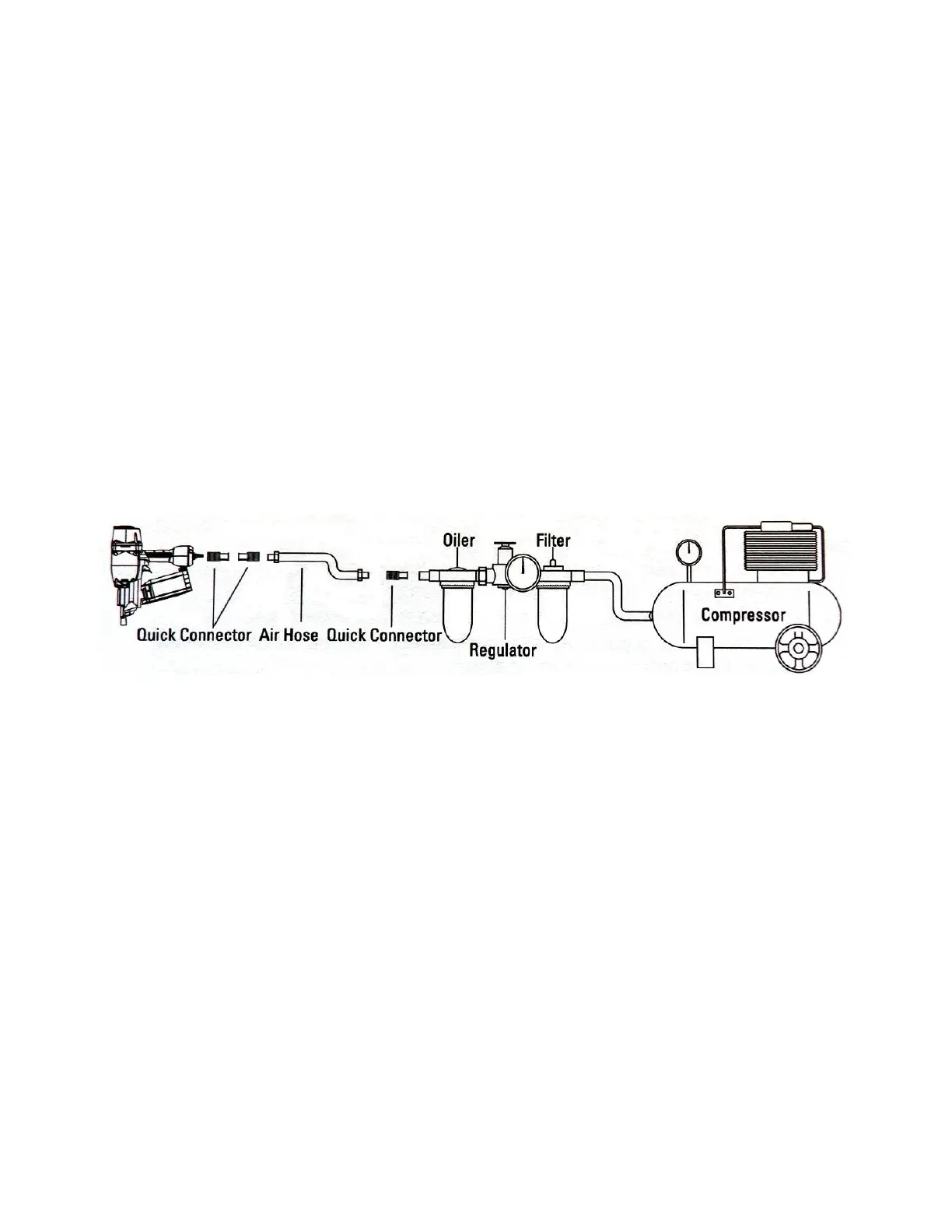 • The regulator controls the operating pressure for safe operation of the nailer.