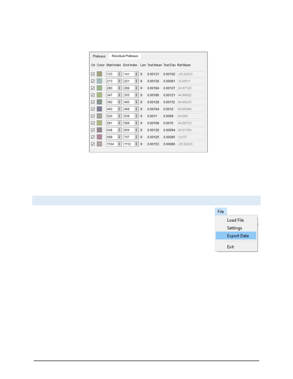 data from each plateau to a single CSV file. To do so, click the Export Data button that has