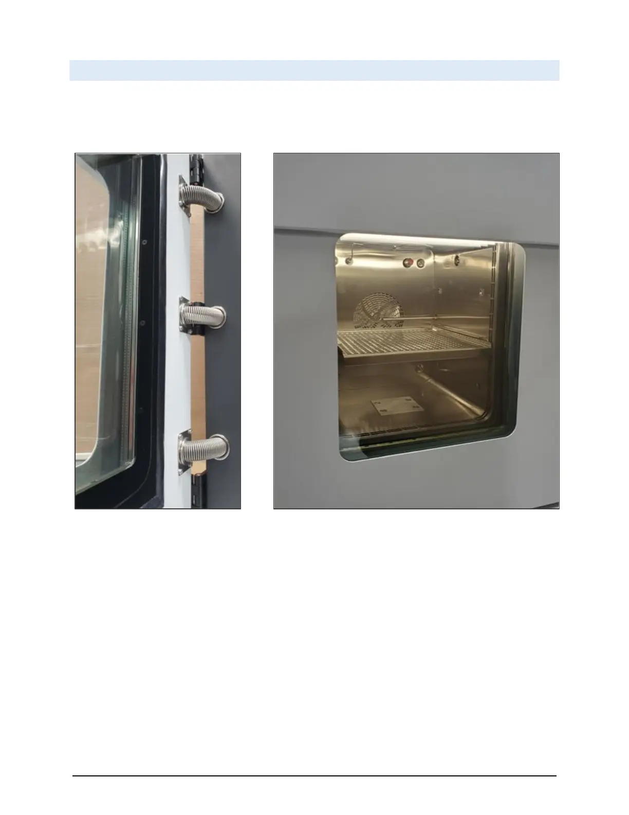 The liquid jacketed chamber door uses heavy duty hinges, a recessed latching mechanism, a built-in light, and