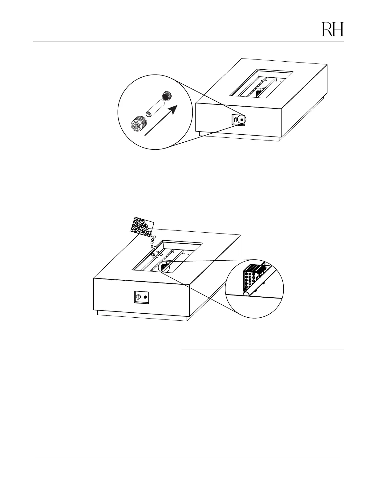 • Do not overfill the burner area with rock; use only the specified amount. The depth of the