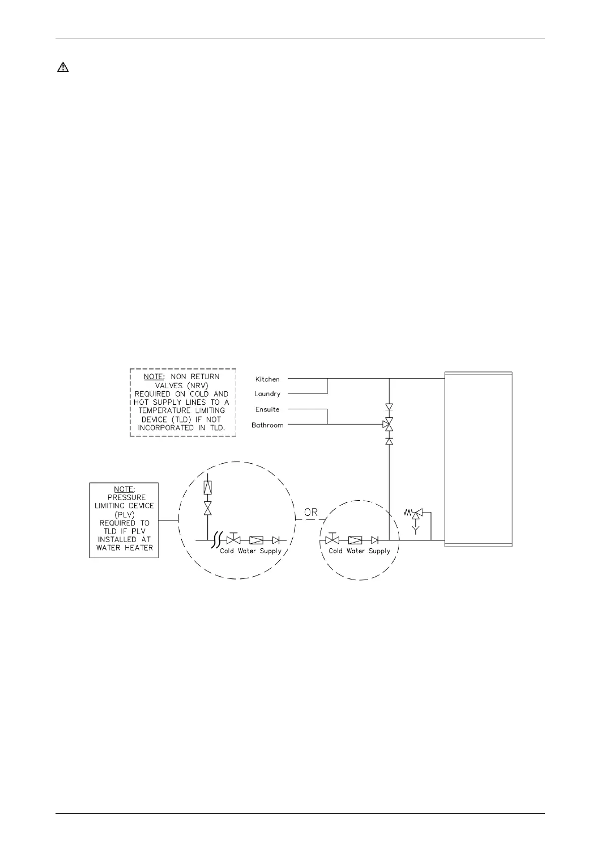 pressure limiting valve and non-return valve to the water heater. If an expansion control valve is required, it