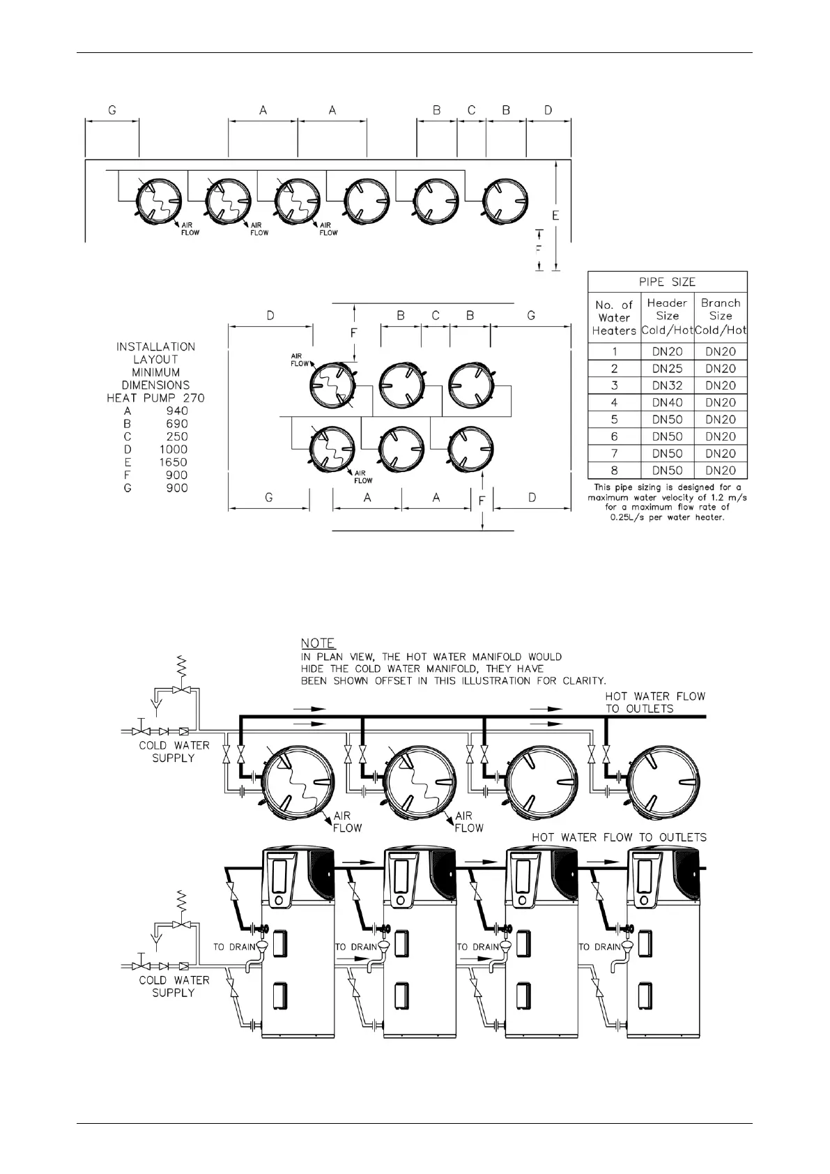 TYPICAL INSTALLATION MULTIPLE 571D270 HEAT PUMP WATER HEATERS DEAD LEG