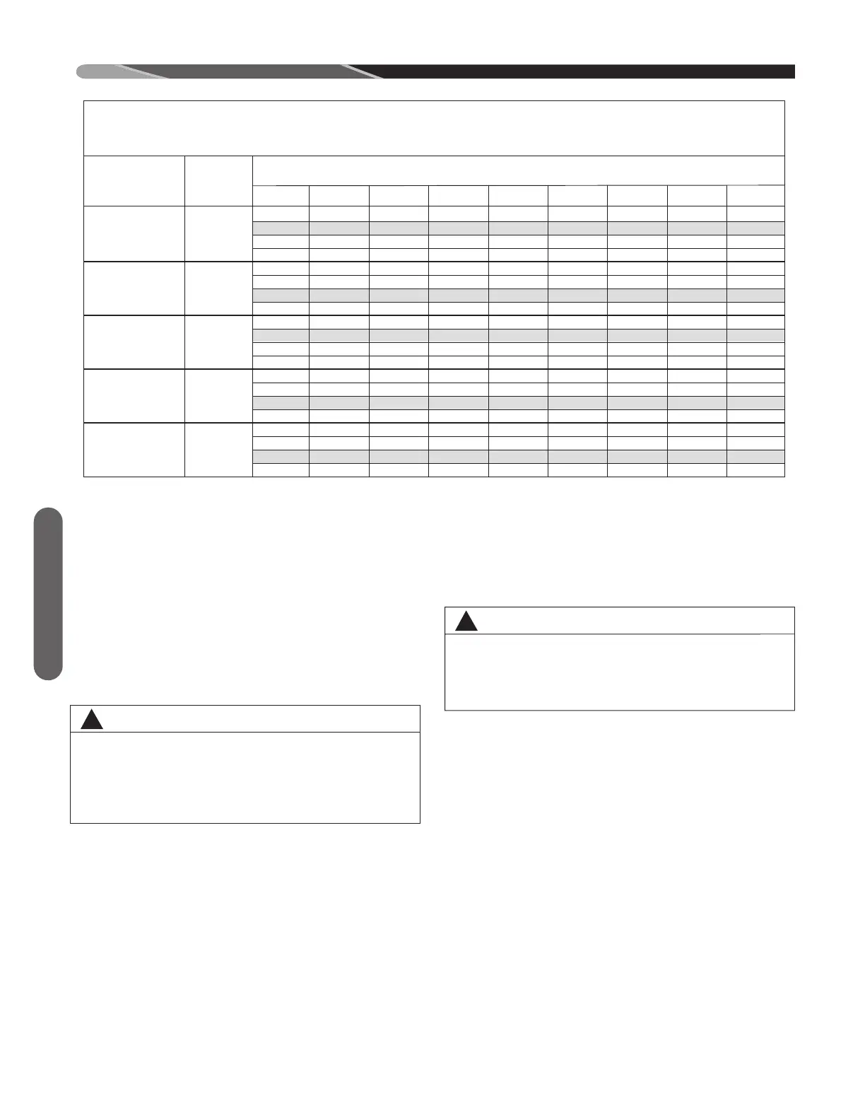 NOTE: Shaded data is factory heating tap.