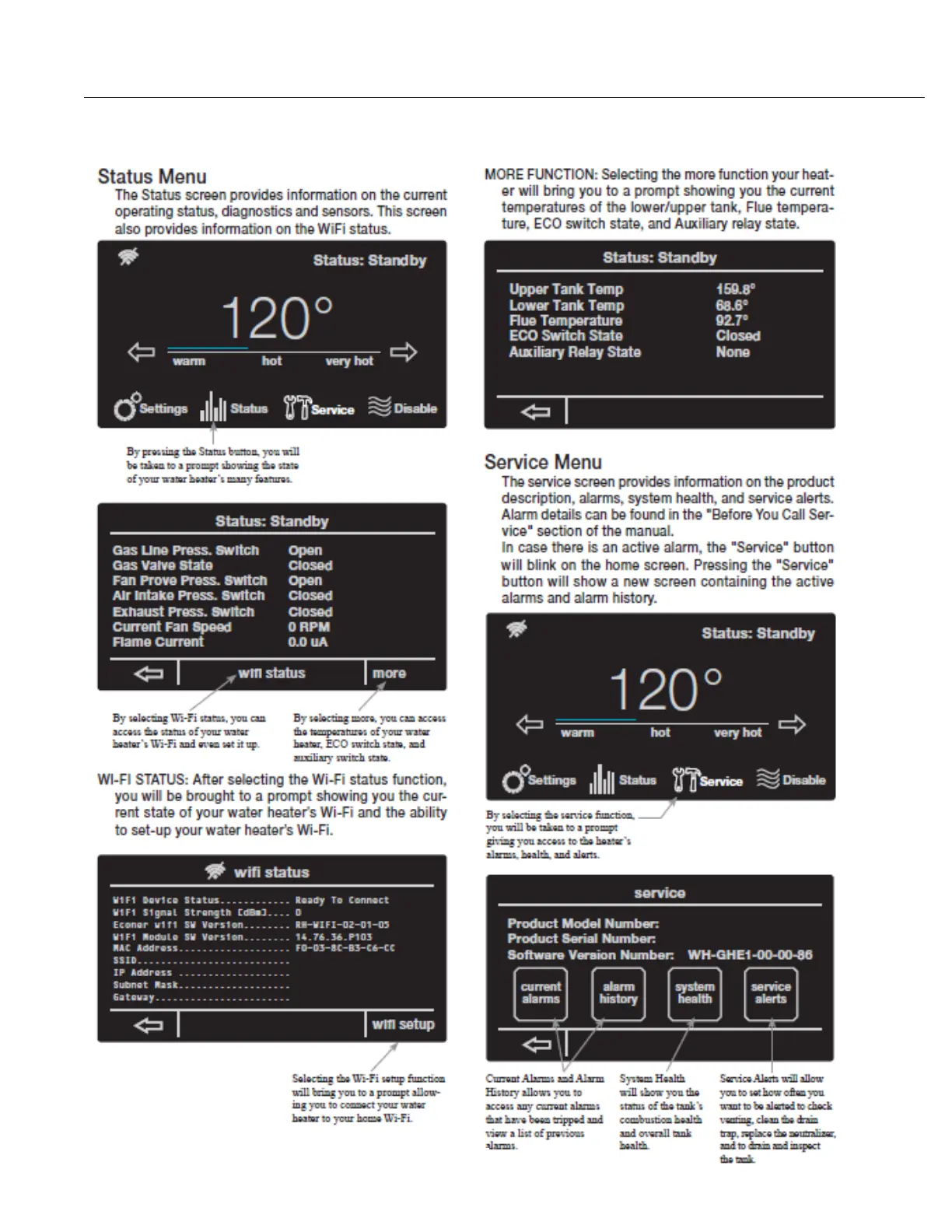 Rheem GHE80SU - Status Menu; Service Menu