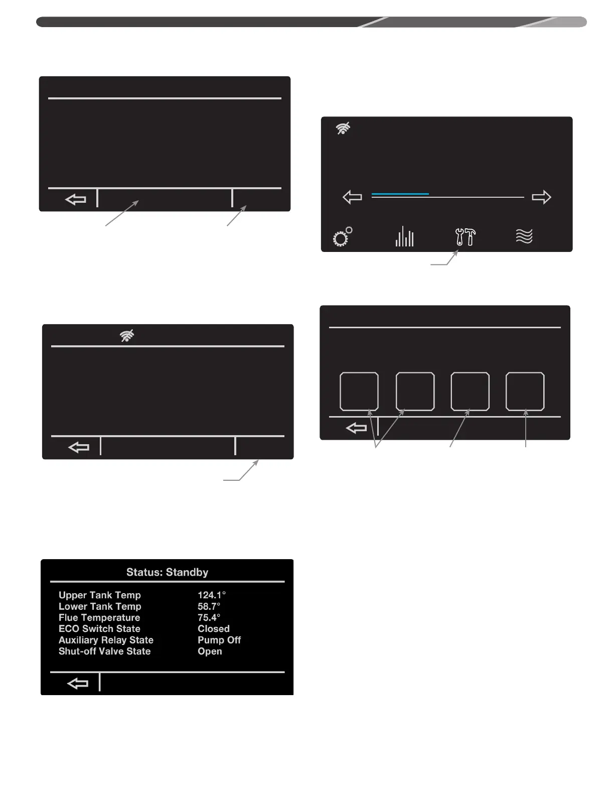 the lower/upper tank, Flue temperature, ECO switch state, and